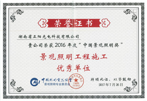 湖南省正陽光電科技有限公司是一家從事亮化工程及大型燈光藝術(shù)的設(shè)計、制作、安裝和維護(hù)于一體的專業(yè)化公司。公司資質(zhì)齊全、管理嚴(yán)謹(jǐn)、技術(shù)先進(jìn)、實力雄厚,取得了城市及道路照明工程專業(yè)承包壹級資質(zhì)、照明工程設(shè)計專項甲級資質(zhì)、機(jī)電工程施工總承包貳級資質(zhì)、施工勞務(wù)等資質(zhì),榮獲“重質(zhì)量·守誠信”示范企業(yè)。